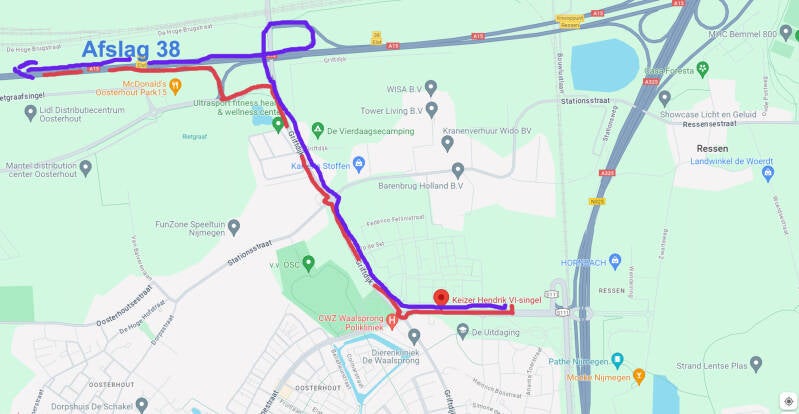 - adres: Keizer Hendrik VI-singel, 6515 AE Nijmegen. Neem vanaf N325 (beide richtingen) afslag Oosterhout en volg de gele borden 'Parkeren 4Daagse' en 'P 4Daagse)