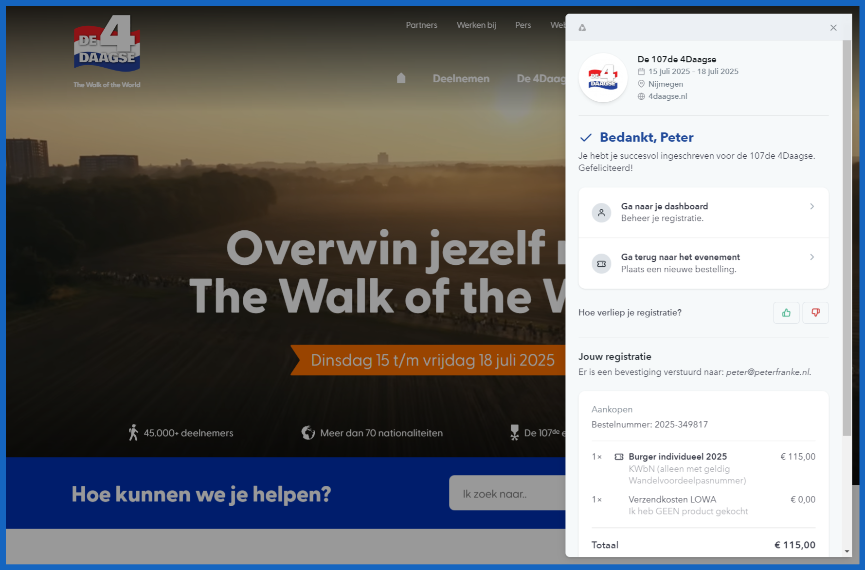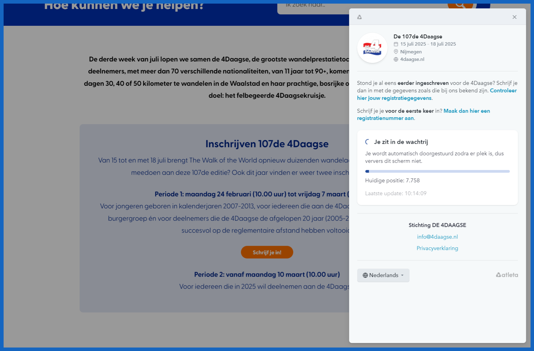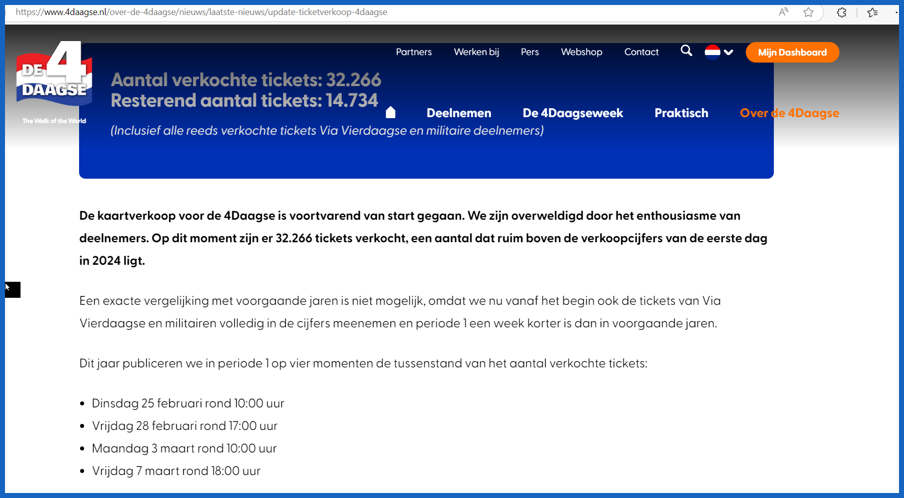 Om meer wandelaars een kans te geven om deel te nemen, heeft de organisatie van de 4Daagse dit jaar de regels voor inschrijving aangescherpt. Babs Rijke van de 4Daagse legt uit: "Vroeger had je gegarandeerd toegang tot de inschrijving als je ooit een kruisje had behaald. Nu geldt er een maximum van twintig jaar. Wie vóór 2005 heeft meegedaan, moet wachten om zich in te schrijven