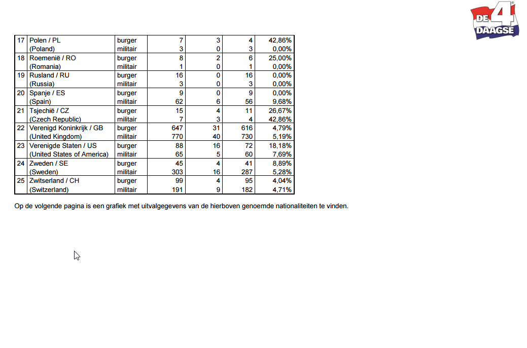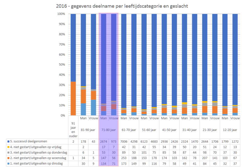2016 Totaal uitvallers/Niet starters: (met meer starters i.v.m. de 100e vierdaagse)