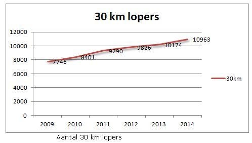 30km (Blauw) individueel = 11.854 (= 28,46% van de individuele inschrijvingen)