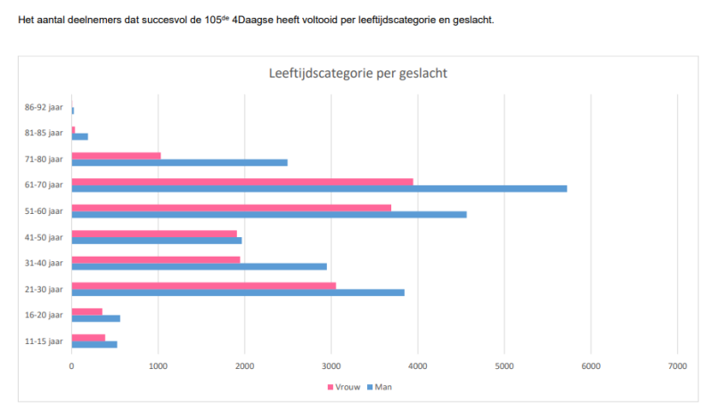 - 17.253 wandelaars (36,7% van het totaal aantal deelnemers) dit jaar gaan voor beloning 1? In 2019 was dit 30,06%, in 2022 steeg het naar 36,5% en vorig jaar zelfs naar 36,9%